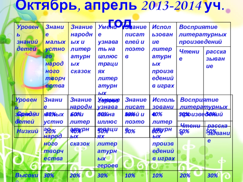 Слайд 19Октябрь, апрель 2013-2014 уч.год