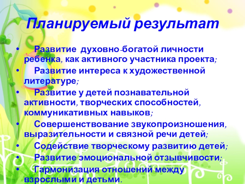 Совершенствование звукопроизношения, выразительности и связной речи детей;