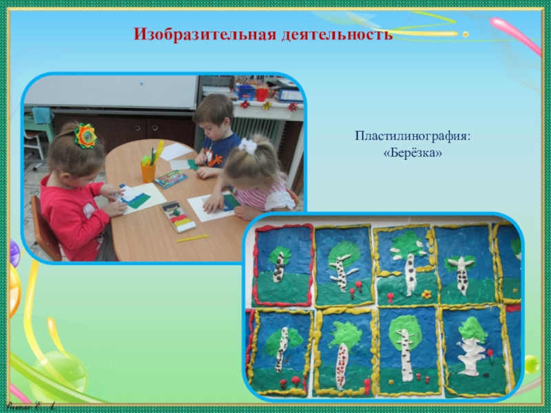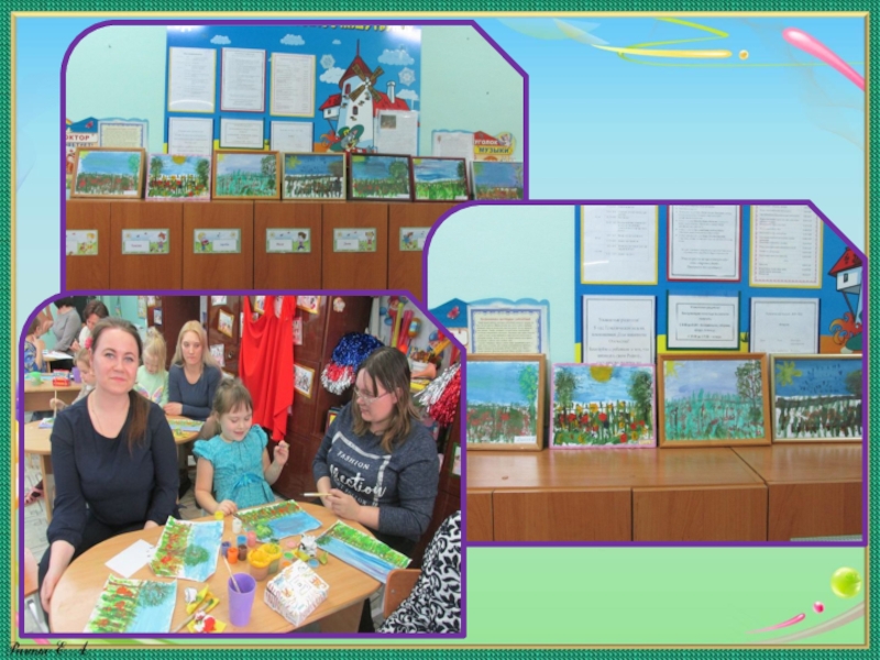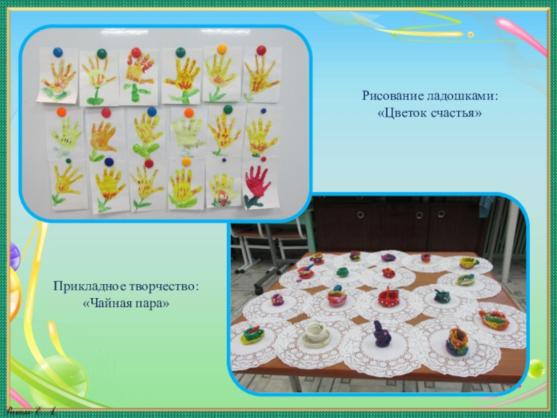 – выставка художественных работ в различных видах изобразительного искусства (импрессионизм, пластилинография, ниткография, из солёного теста, скрапбукинг, рисование мыльными пузырями).