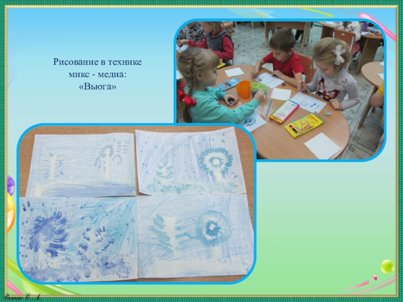 Слайд 17Рисование в технике микс - медиа: «Вьюга»
