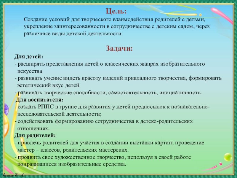 Создание условий для творческого взаимодействия родителей с детьми, укрепление