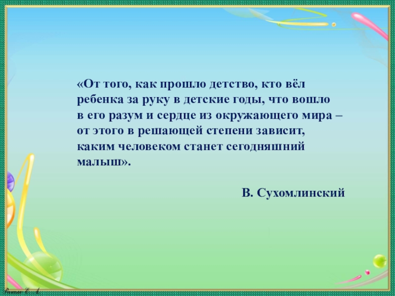 от этого в решающей степени зависит, каким человеком станет сегодняшний малыш».