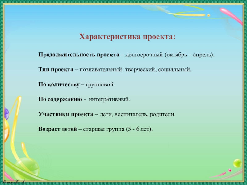 Продолжительность проекта – долгосрочный (октябрь – апрель).