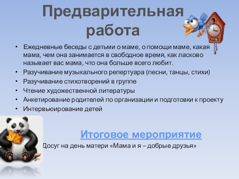 Предварительная работа
