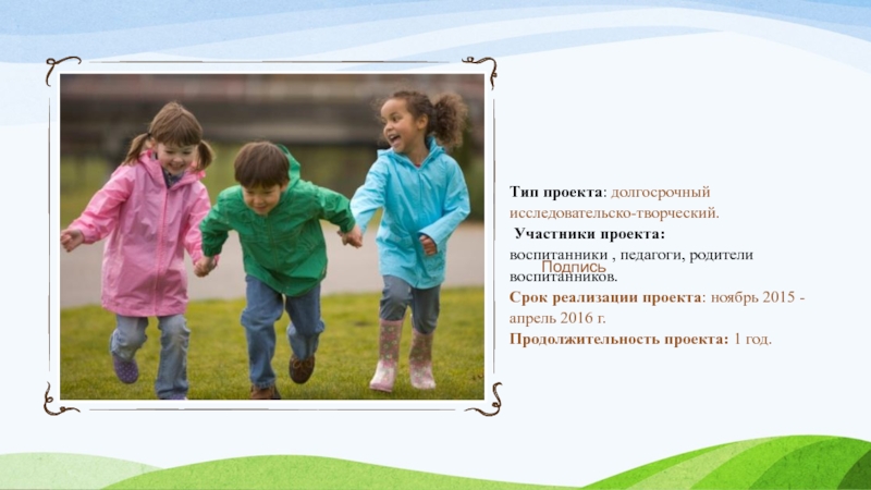 реализации проекта: ноябрь 2015 - апрель 2016 г.