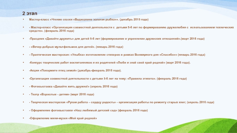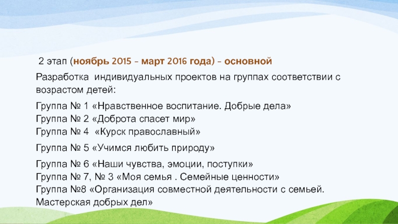 Слайд 12 2 этап (ноябрь 2015 - март 2016 года) - основной
