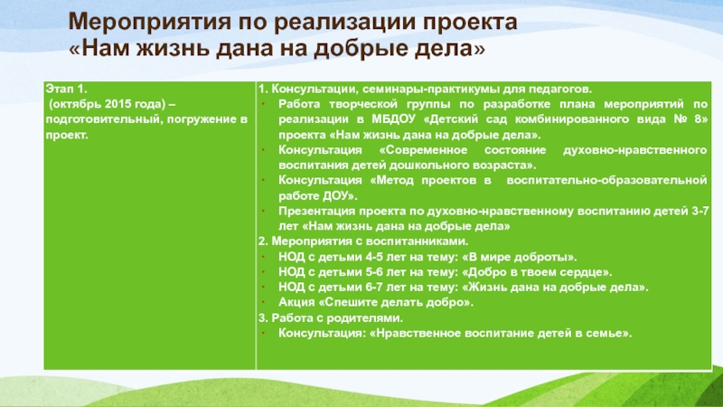 Группа № 1 «Нравственное воспитание. Добрые дела»