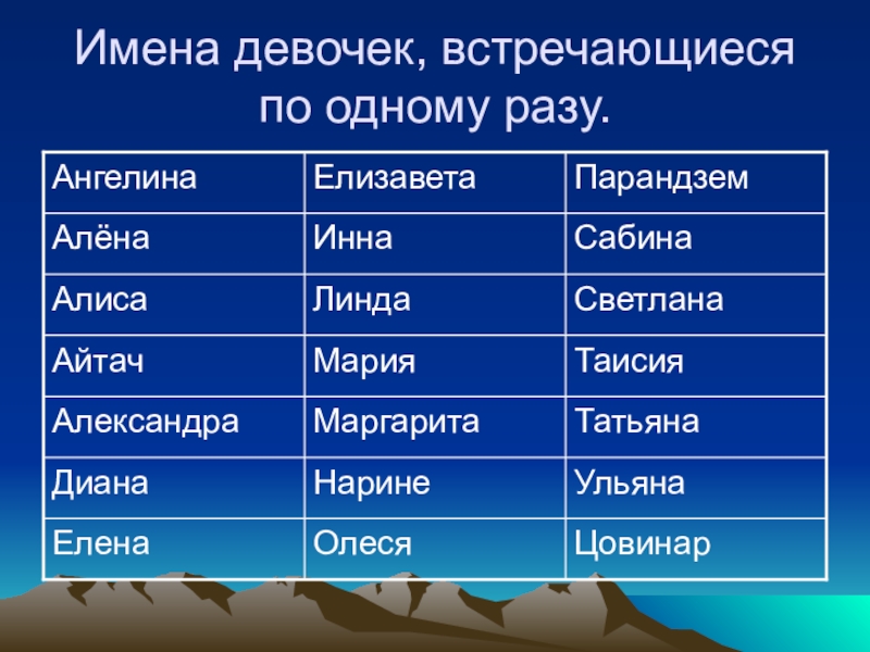 Имена девочек, встречающиеся по одному разу.
