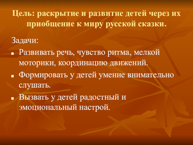 Развивать речь, чувство ритма, мелкой моторики, координацию движений.
