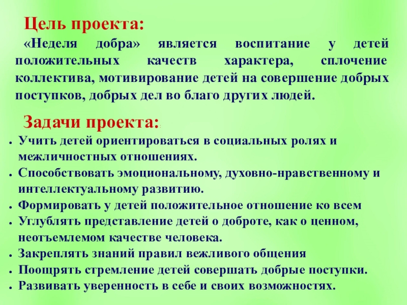 Углублять представление детей о доброте, как о ценном, неотъемлемом качестве человека.