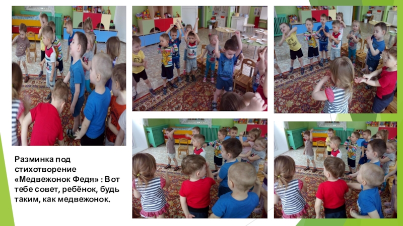 Слайд 31Разминка под стихотворение «Медвежонок Федя» : Вот тебе совет, ребёнок, будь