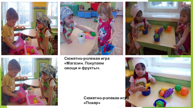 Слайд 19Сюжетно-ролевая игра «Магазин. Покупаем овощи и фрукты».