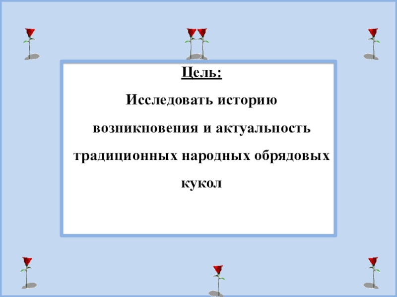 Цель:Исследовать историю возникновения и актуальность традиционных народных обрядовых кукол