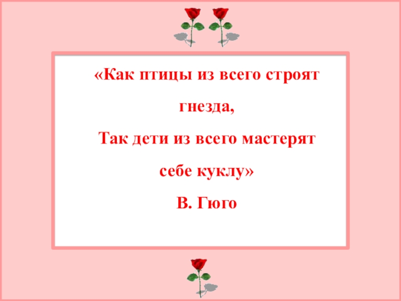 «Как птицы из всего строят гнезда,Так дети из всего мастерят себе куклу»В. Гюго
