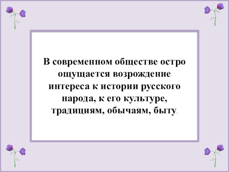 В современном обществе остро ощущается возрождение интереса к истории русского народа,