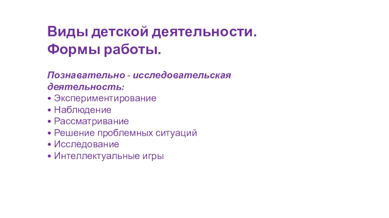 Слайд 12Виды детской деятельности. Формы работы.