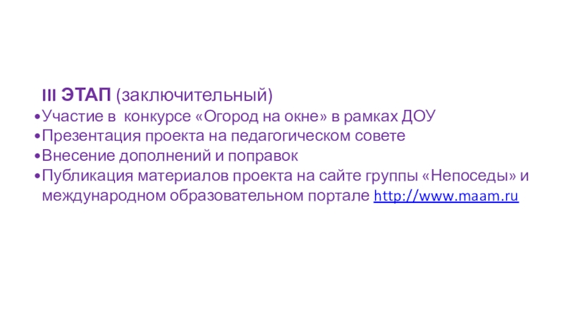 - участие в интернет –конкурсе «Огород на подоконнике» и пополнение грамотой портфолио воспитателя.