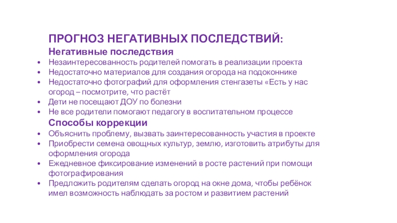 Слайд 19ПРОГНОЗ НЕГАТИВНЫХ ПОСЛЕДСТВИЙ: