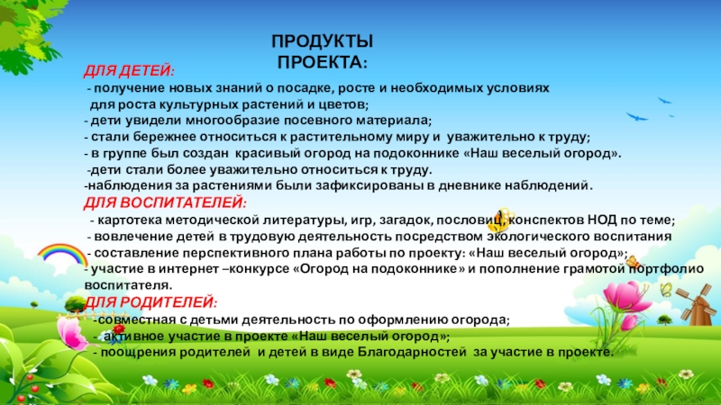 - активное участие в проекте «Наш веселый огород»;