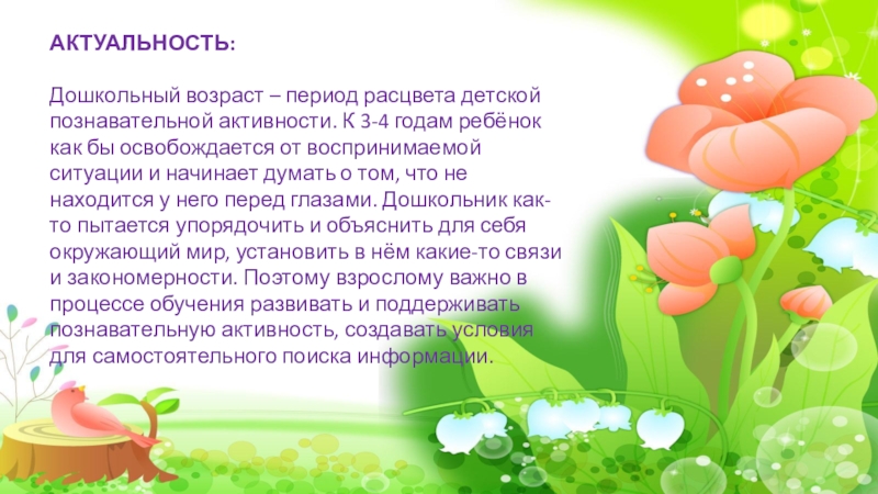 Дошкольный возраст – период расцвета детской познавательной активности. К 3-4 годам