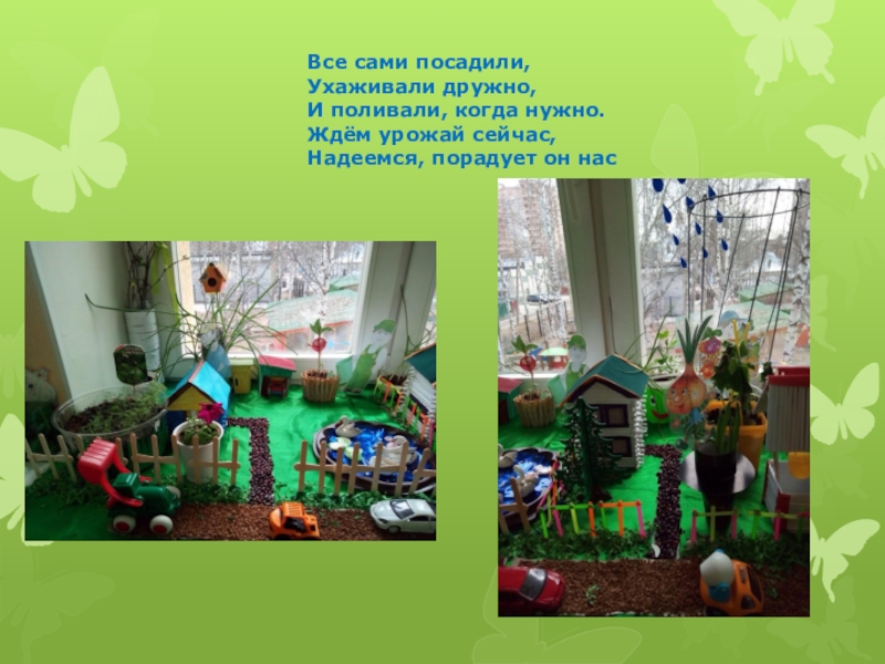 Огород на окне перенесли на участок группы.