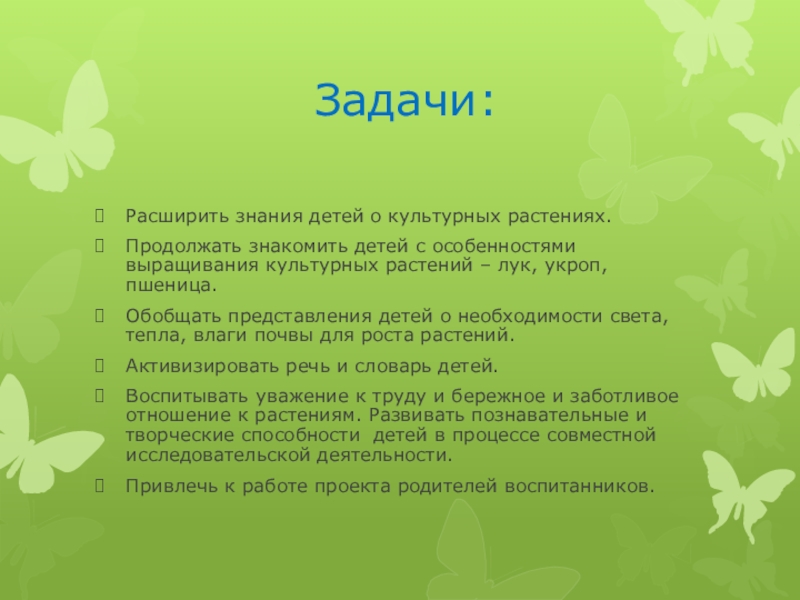 Продолжать знакомить детей с особенностями выращивания культурных растений – лук, укроп, пшеница.