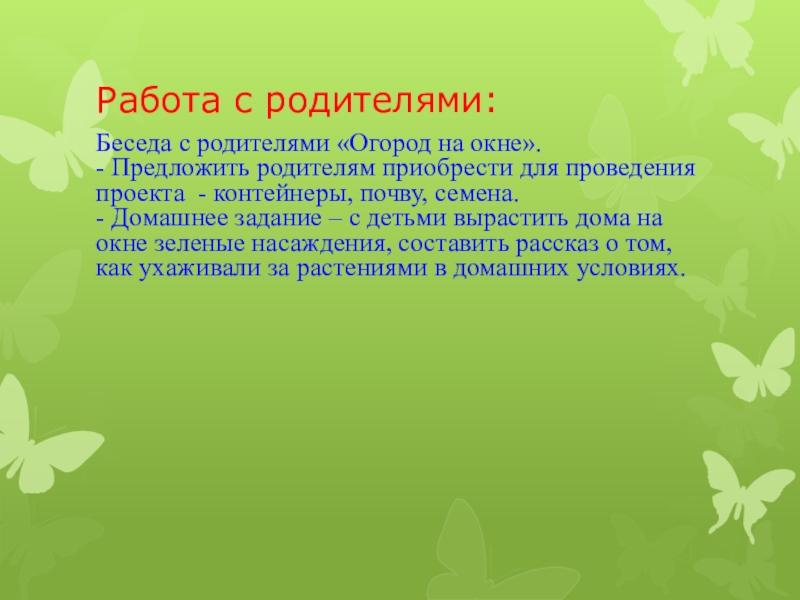 Беседа с родителями «Огород на окне».