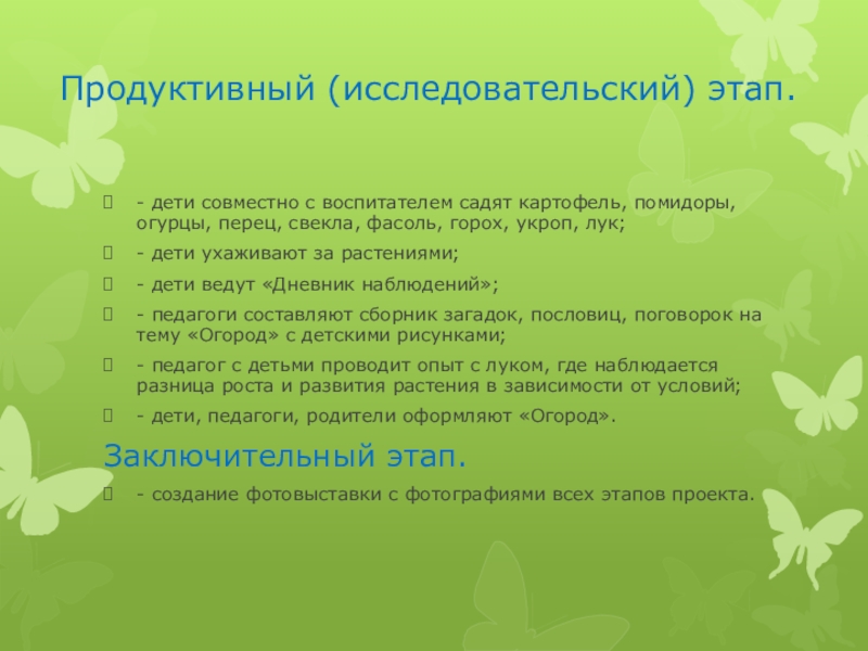 Слайд 8Продуктивный (исследовательский) этап.
