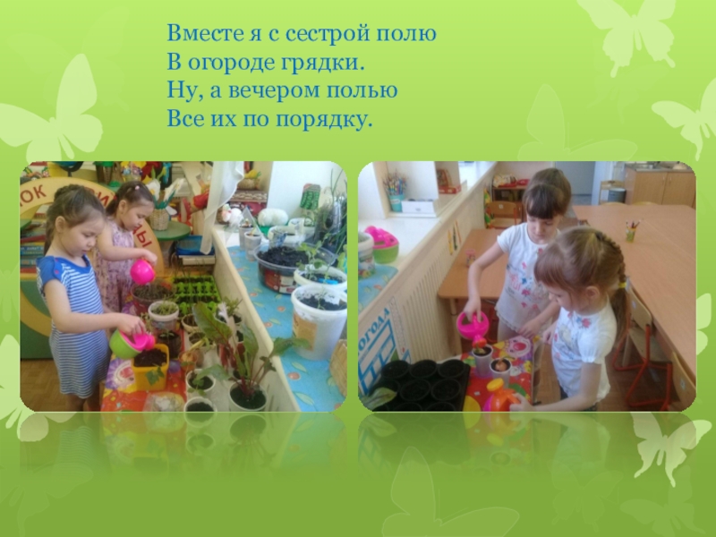 - дети совместно с воспитателем садят картофель, помидоры, огурцы,