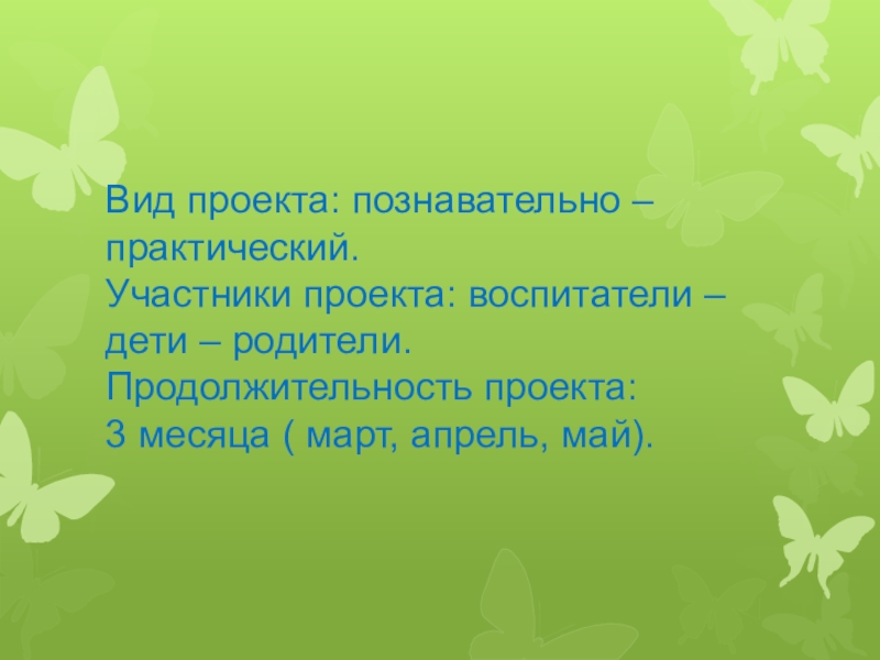 Вид проекта: познавательно – практический.