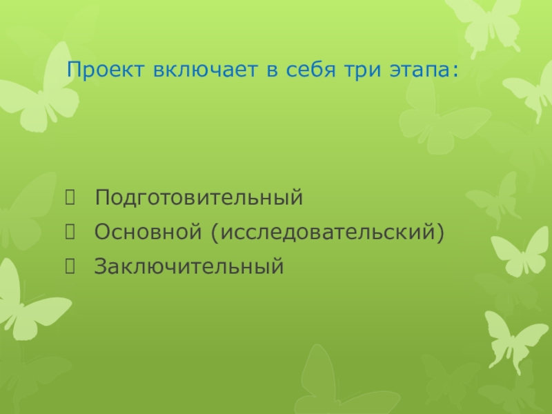 Слайд 6Проект включает в себя три этапа: