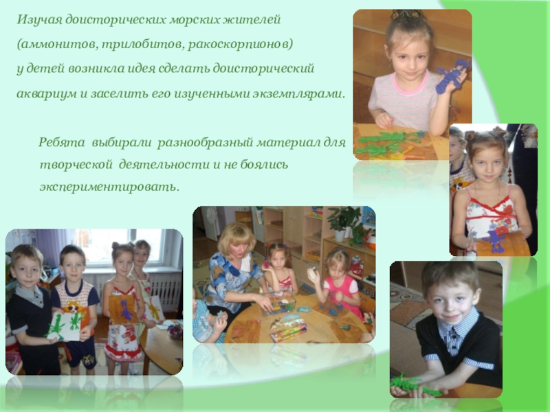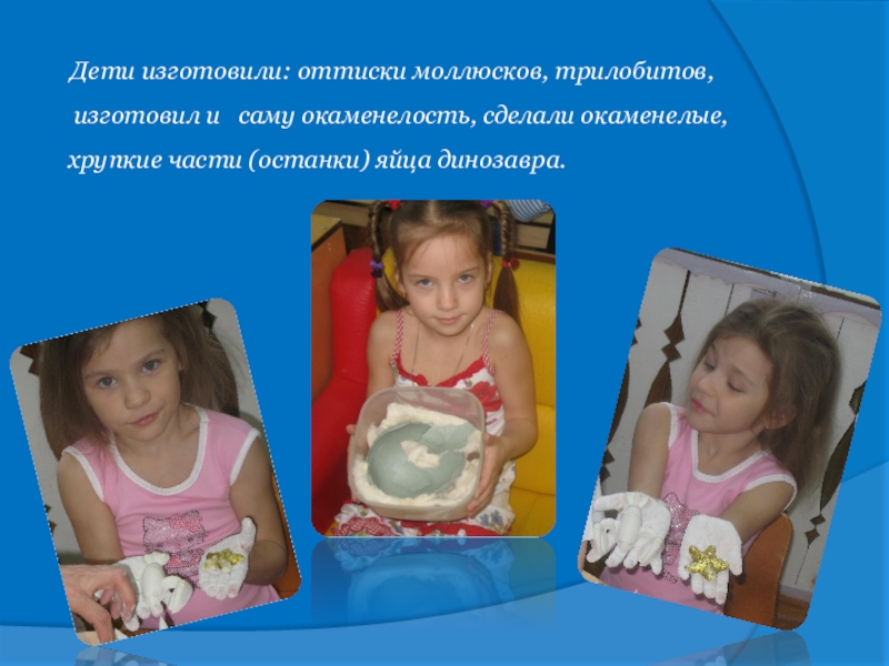 Слайд 8 Дети изготовили: оттиски моллюсков, трилобитов,