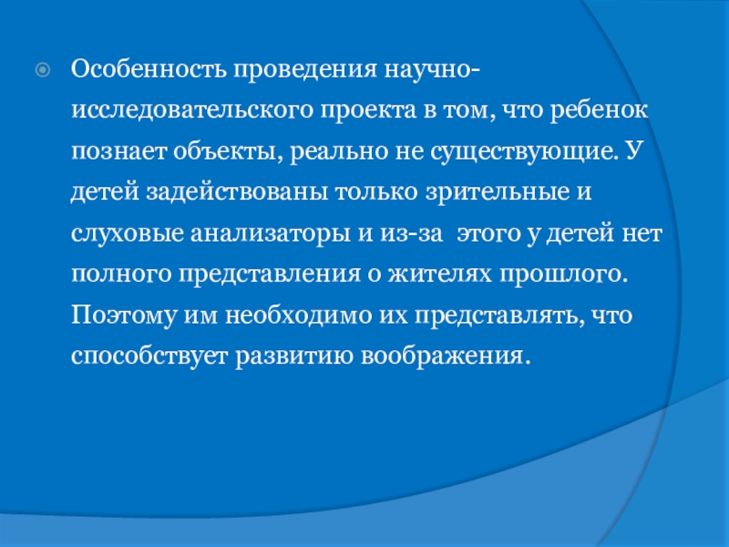 Слайд 21Особенность проведения научно-исследовательского проекта в том, что ребенок познает объекты, реально