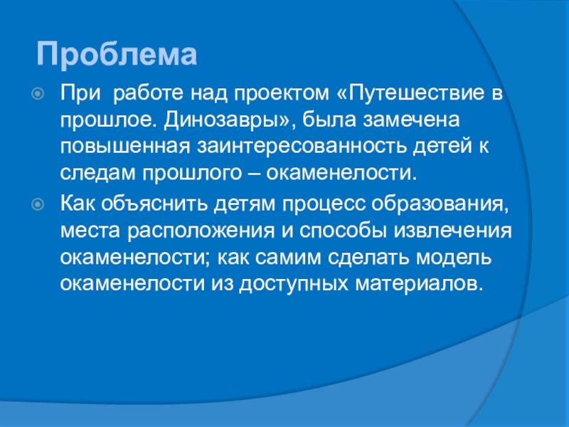 При работе над проектом «Путешествие в прошлое. Динозавры», была замечена повышенная