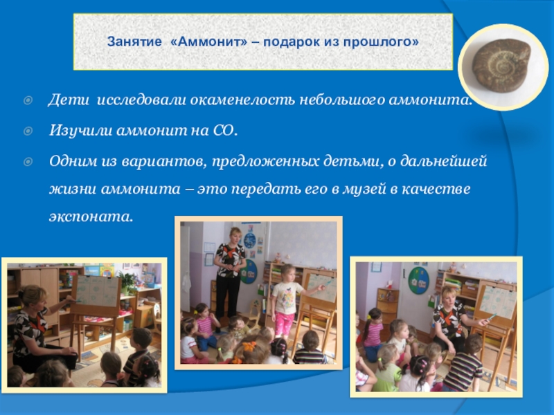 вариантов, предложенных детьми, о дальнейшей жизни аммонита – это передать его в музей в качестве экспоната.