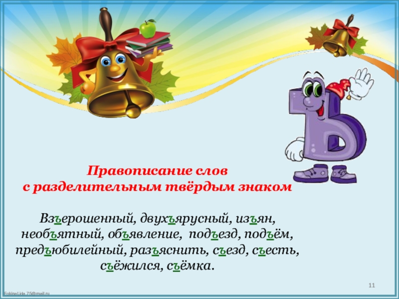 подъём, предъюбилейный, разъяснить, съезд, съесть, съёжился, съёмка.