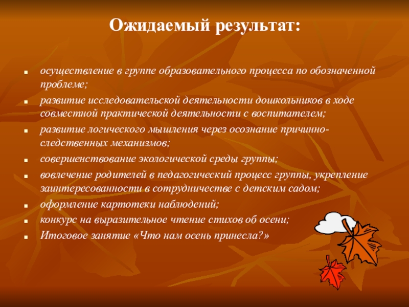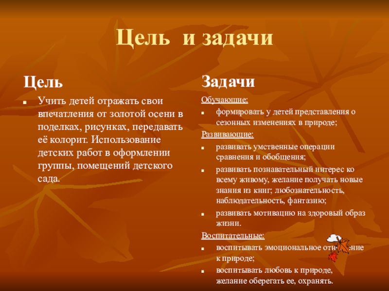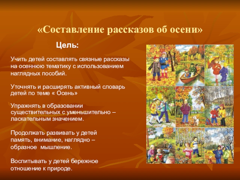 Уточнять и расширять активный словарь детей по теме « Осень»