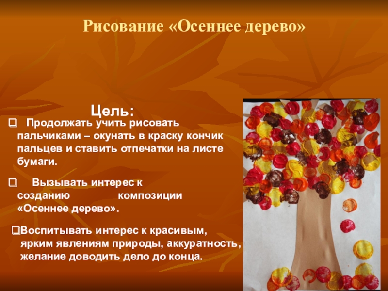 Вызывать интерес к созданию композиции «Осеннее дерево».