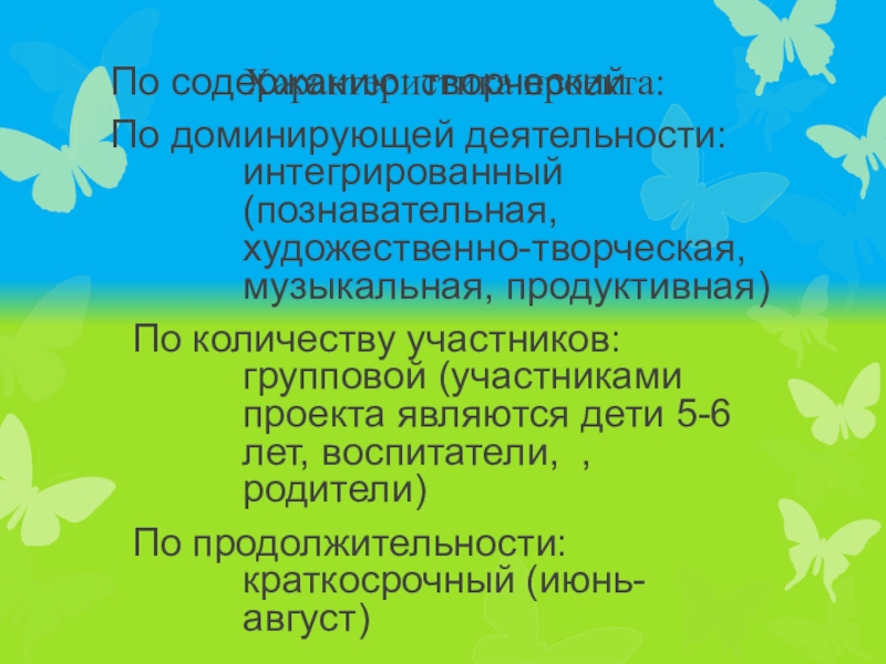количеству участников: групповой (участниками проекта являются дети 5-6 лет, воспитатели, , родители)