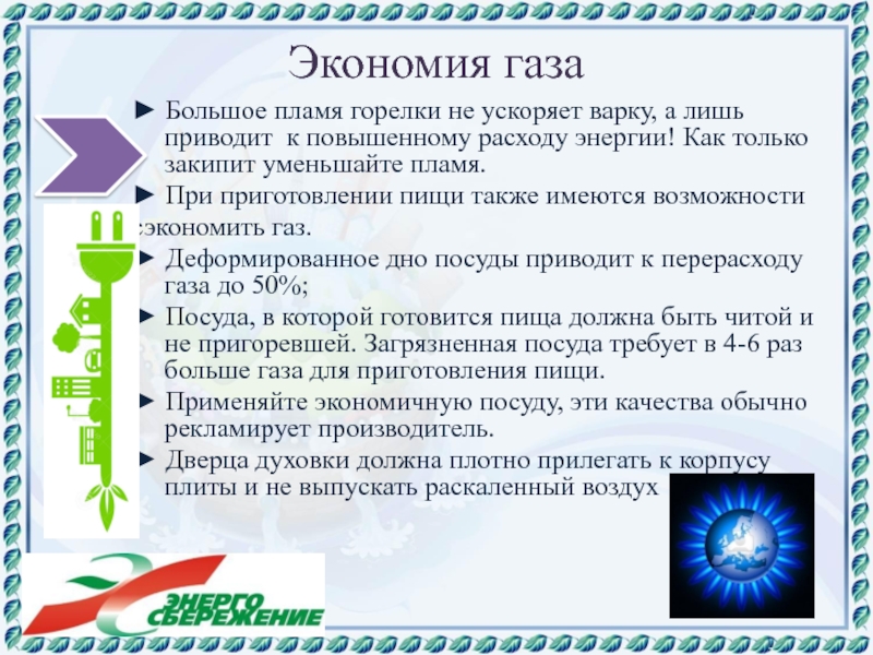 ► Показать одноклассникам различные способы экономии тепла, электроэнергии и газа в быту