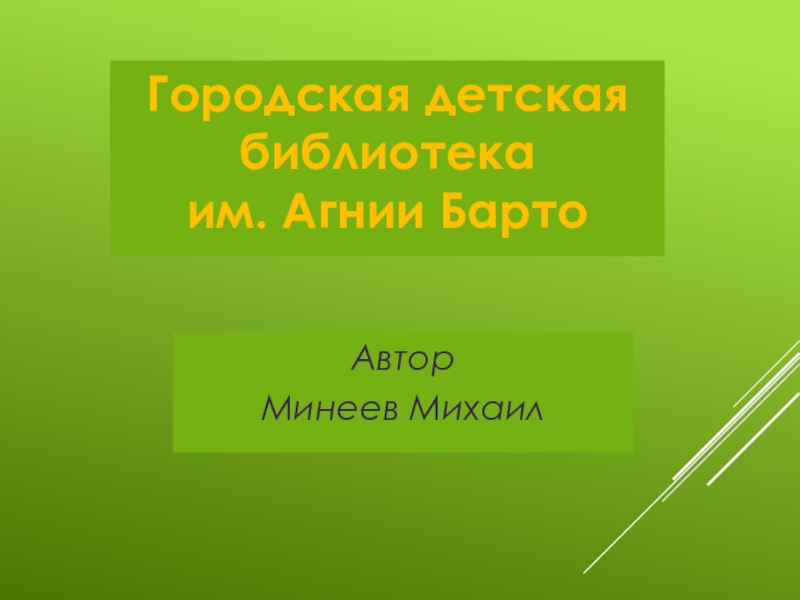 Презентация, доклад проекта по литературе Городская детская библиотека имени А. Л. Барто