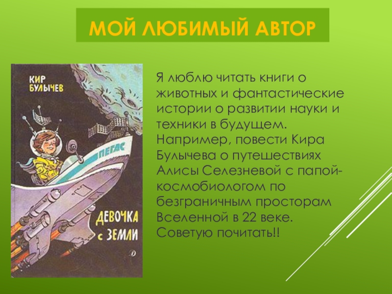 МОЙ ЛЮБИМЫЙ АВТОРЯ люблю читать книги о животных и фантастические истории о развитии науки и техники в