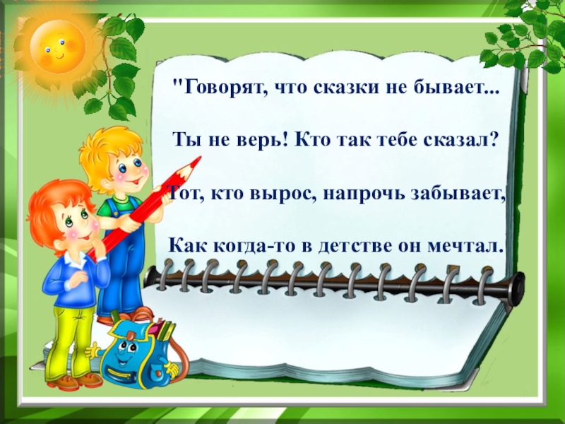 Слайд 1"Говорят, что сказки не бывает... Ты не верь! Кто так тебе сказал? Тот,