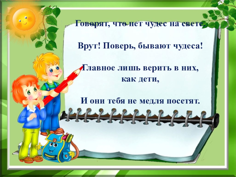 Слайд 2Говорят, что нет чудес на свете. Врут! Поверь, бывают чудеса! Главное лишь верить