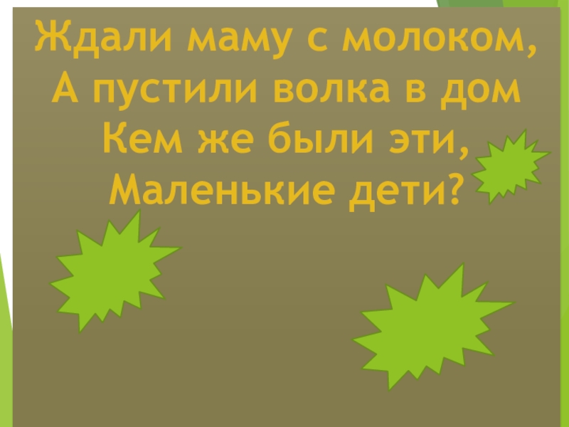 Ждали маму с молоком,А пустили волка в домКем же были эти, Маленькие дети?