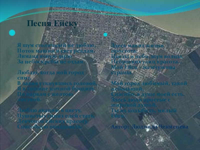 Стихи о Ейске http://ljubimaja-rodina.ru/stikhi/1744-stikhi-pro-gorod-ejsk.html