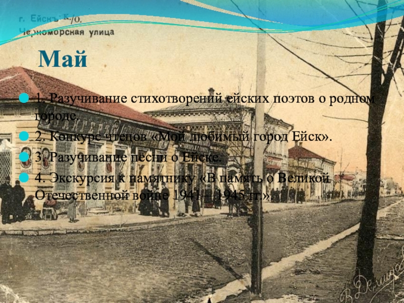 1. Рассматривание иллюстраций и фотографий со старыми современными видами города Ейска.
