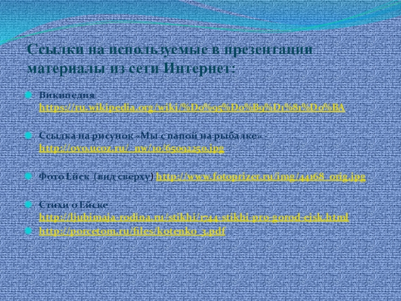 Слайд 32Ссылки на используемые в презентации материалы из сети Интернет: