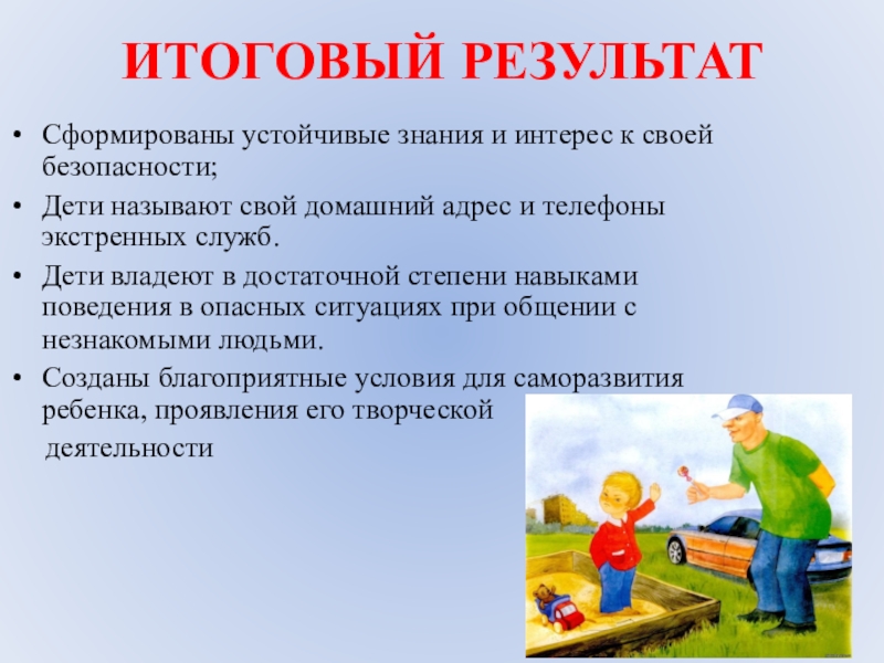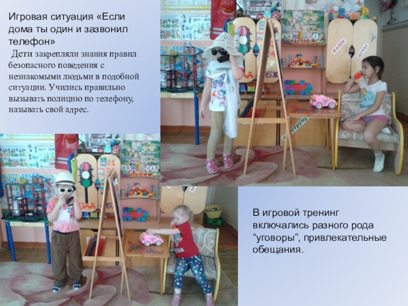 Дети учились правильно реагировать на «опасные» ситуации: уметь звать на помощь, обратить внимание прохожих и взрослых на себя. Игра воспитывает бдительность, осторожность, дисциплину.