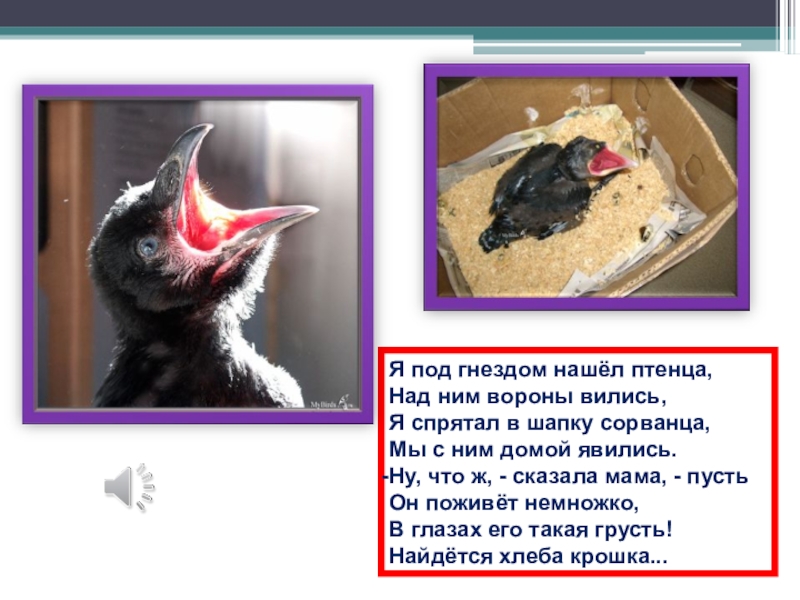 Слайд 23Я под гнездом нашёл птенца,